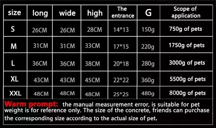 M (40x35x38 cm): até 10kg (gatos) ou 5kg (cães)