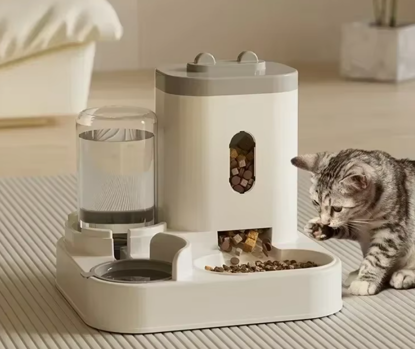 Com um mecanismo totalmente mecânico baseado na gravidade, a comida e a água são distribuídas automaticamente, sem eletricidade ou baterias. Mais praticidade para você e segurança para seu pet.